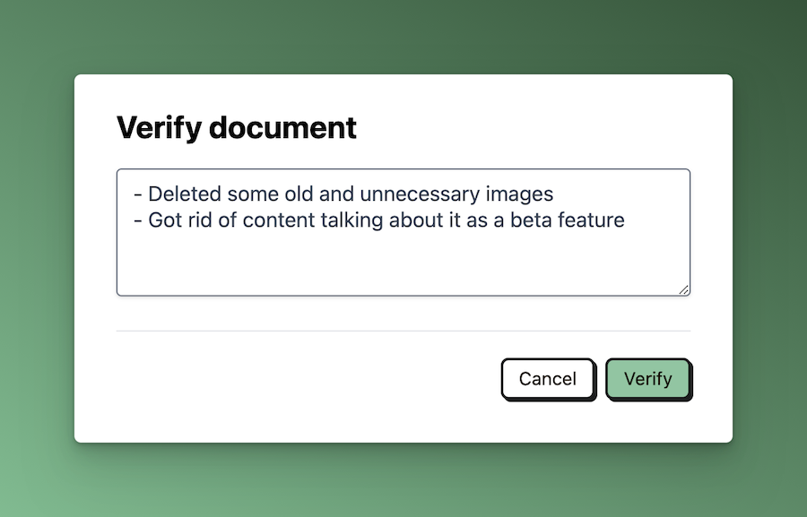 When you verify a document, you can now add notes about any updates that were made during verification.