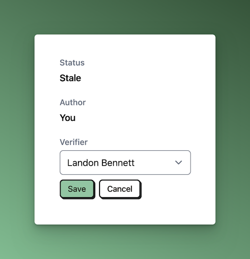 By default, we set the document author as the verifier. But you may want the verifier to be someone else who is an expert on the topic (e.g. a developer or product owner).